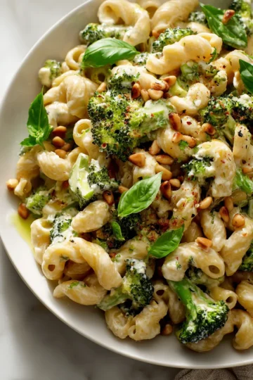 - Creamy Goat Cheese Pasta with Broccoli and Pine Nuts