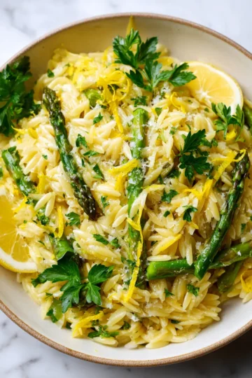 - Lemon Parmesan Garlic Orzo with Asparagus