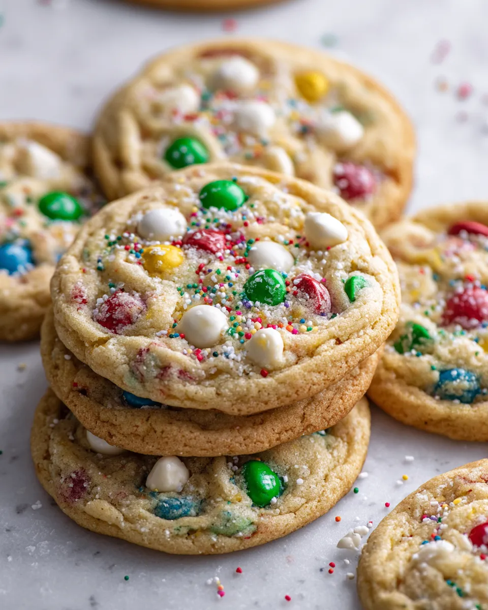 These White Chocolate M&M's Pudding Cookies are soft, chewy delights that bring festive cheer to any holiday gathering.